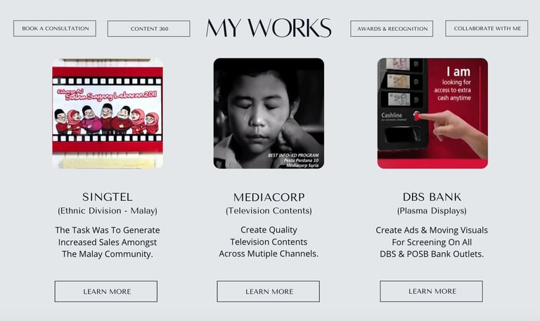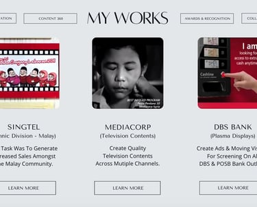 Over the years, I performed in various television programs across the Malay and English channels, starred in television commercials and corporate videos.